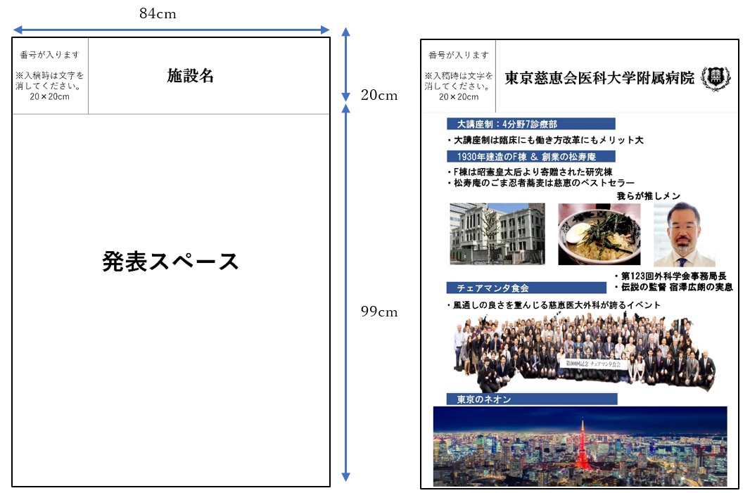 本企画は会場内の一角を使用し、各施設の臨床・研究・外科研修プログラム、地域特性、自慢のスタッフならびに病院ご当地グルメなどを、ポスター形式でお披露目いただくことを目的としております。