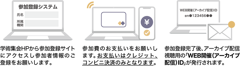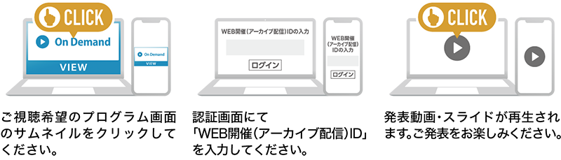 WEB開催(アーカイブ配信)IDは参加登録マイページ、ネームカード(参加証)にてご案内しています。