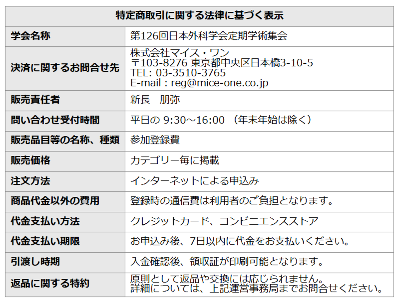 ※まれに上記メールアドレスに送信できない事象が発生しております。その場合は第126回日本外科学会定期学術集会 運営準備室(jss2026@congre.co.jp)までご連絡ください。