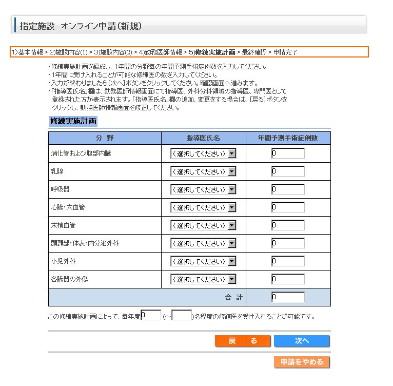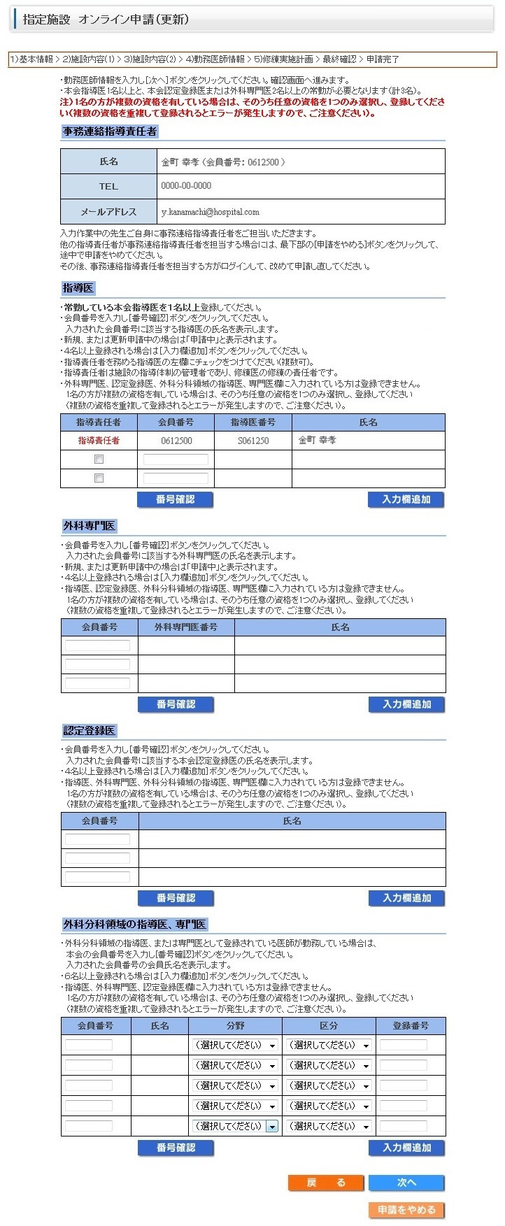 ※指導医は「4.勤務医師情報の登録」の画面内で指導医、関連外科分科領域の指導医、専門医として登録した中からの選択となる。